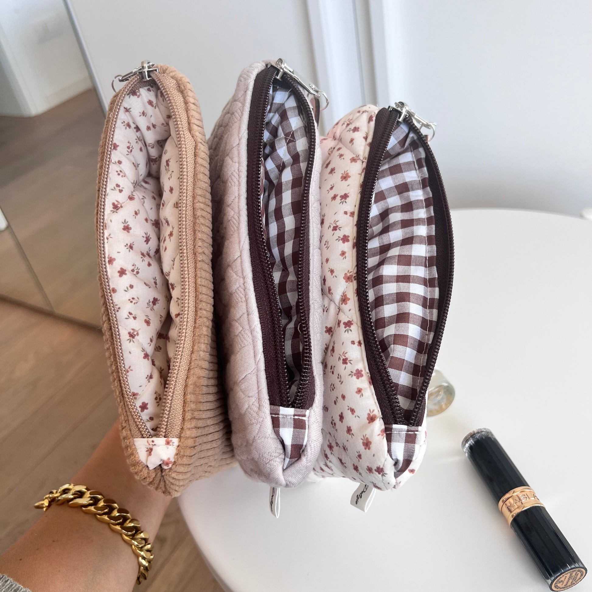 3 Pochette velluto, fiori e trecce